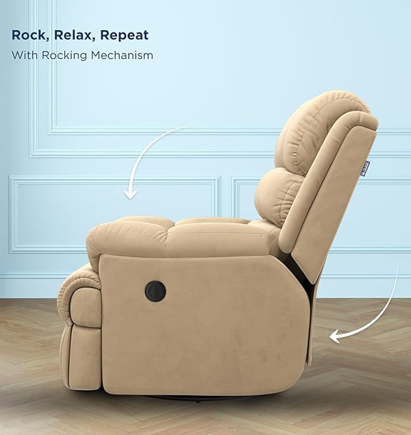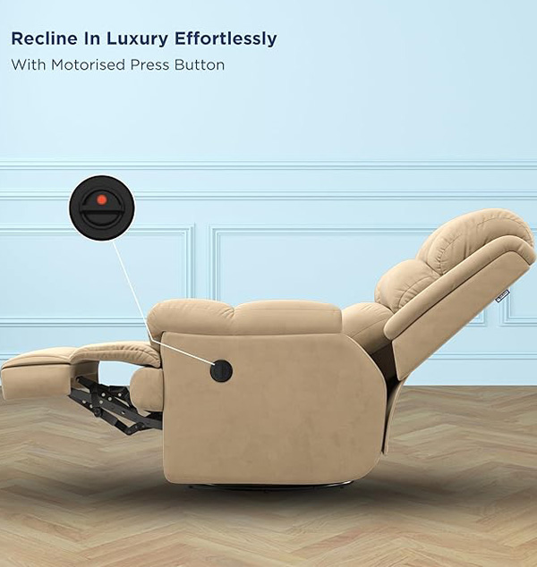 I am using this recliner. The Sleep Company recliner sofa is very comfortable. The electric switch works smoothly, it revolves easily, fits well in a small living area, and looks great. Good quality and easy to use.
