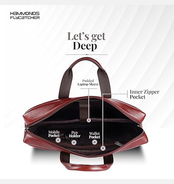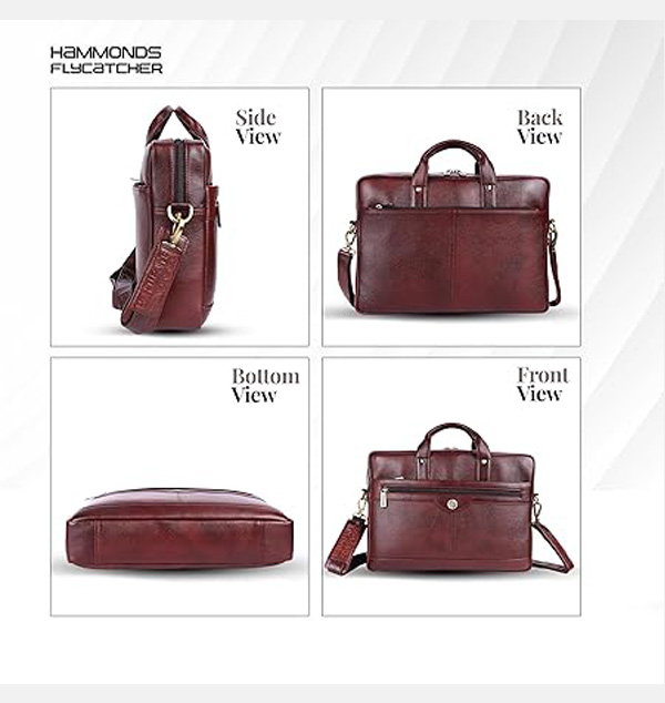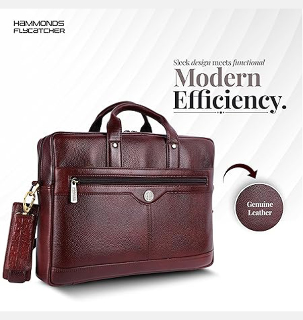 Premium Genuine Leather: Experience the luxury and durability of our HAMMONDS FLYCATCHER Leather Laptop Bag. This Laptop Bag for Men or 15.6 laptop bag is crafted from high-quality materials to ensure longevity and style, it is the perfect leather bag for men for daily use. Elevate your professional look with this stylish mens office bag designed for those who value quality and elegance.