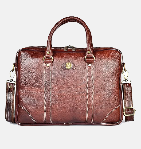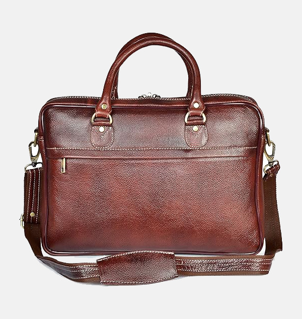 Material:Genuine Leather. Slim, compact case is perfect for carrying laptops .Includes padded shoulder adjustable strap. Additional storage pockets for documents, diaries and other stationery..