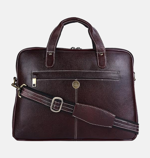 S K Trader Genuine Leather Laptop Messenger Bag Handbag for Men Office/College Use (Brown)