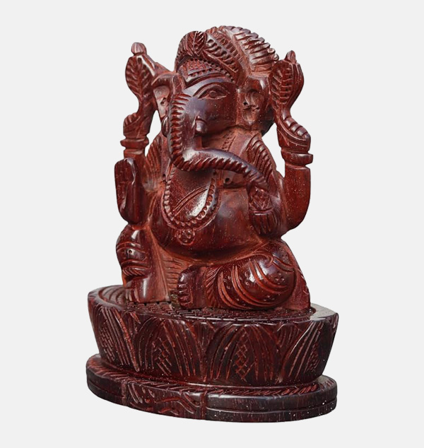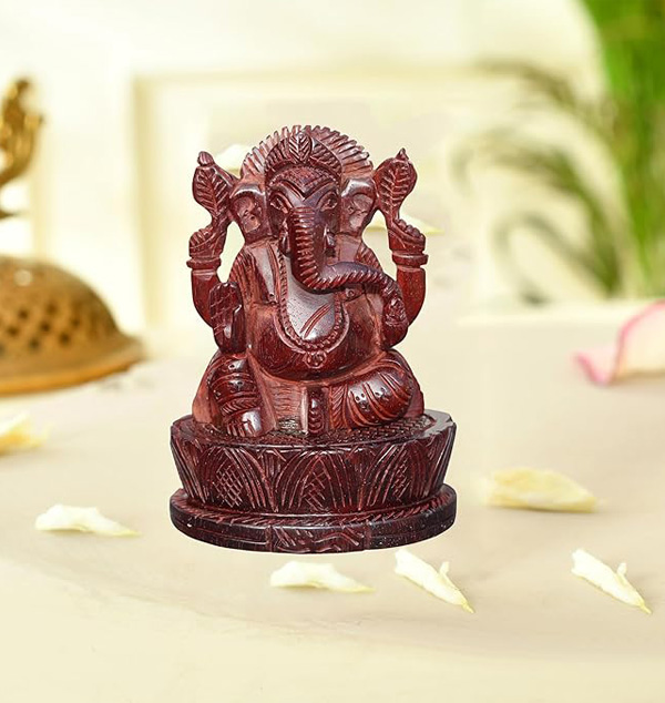 Red Sandalwood Ganesha Statue, Orignal Lal Chandan Lord Ganesha Idol murti Showpiece, Lord Ganesh Statue (Lal Chandan Vinayagar Statue) for Home Office Desk Puja Room Figurine, Gift 4" Inches