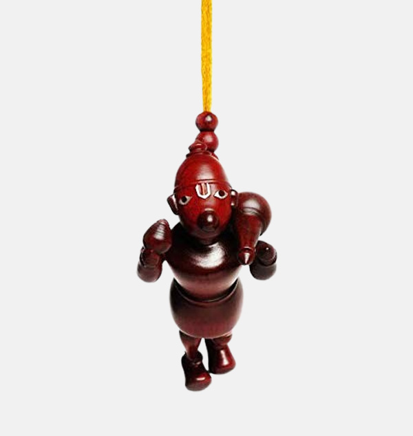 Flying lord hanuman figure. Material : Red Sandalwood. It can be used as a car mirror hanging or door/wall hanging. weight : 58 Grams.