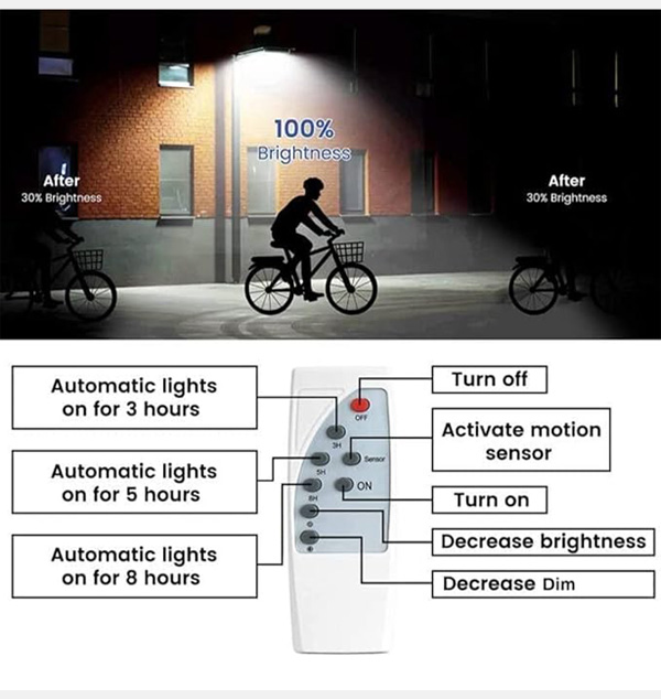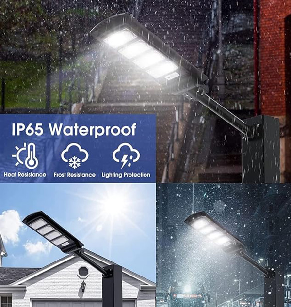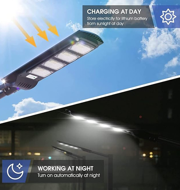 This solar street lights converts solar energy into electricity and stores it in a 20000 mAh battery. Equipped with 240PCS 5730 high quality LED, this solar lights provide 20000LM super brighter daylight at full night. The solar panel (Large size:32.3inch*9.45inch)improve 20% solar conversion rate than normal at lease .Charging for 6-8H, continuous work more than 12 hours. Our street lights have an lifespan up to five years, realizing 0 electricity bills.