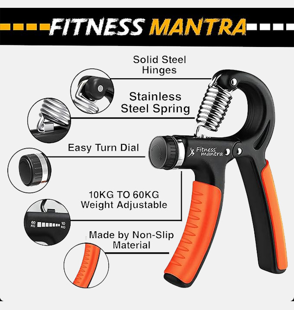 DURABLE QUALITY: - The hand gripper is made of spring staginess steel quality and non-slip material used on the handle. MULTIPURPOSE USE: - The hand grip exerciser can be used for gym and home use as well as anywhere. COMFORTABLE HANDLE: - The handle is comfortable to hold and is made of non-slip material. Hence it will give you extra grip and comfort while exercising