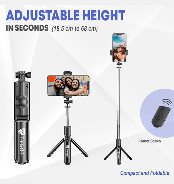 Tygot Bluetooth Extendable Selfie Sticks with Wireless Remote and Tripod Stand, 3-in-1 Multifunctional Selfie Stick with Tripod Stand Compatible with iPhone/OnePlus/Samsung/Oppo/Vivo and All Phones