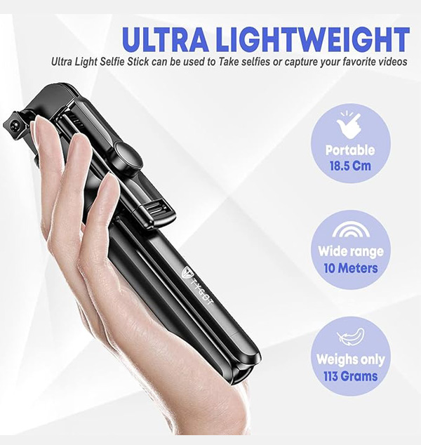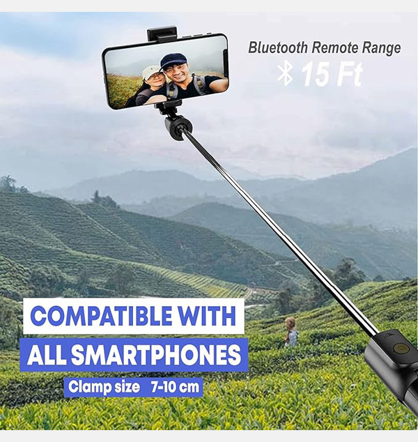 This is a Bluetooth Enabled selfie Stick for Mobile Phone. Just click the wireless remote to capture the photo Bluetooth Selfie Stick is provided with a tiny wireless remote that can be connected to your phone and can be used up to about 15 Ft