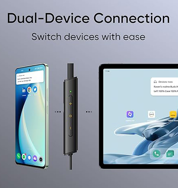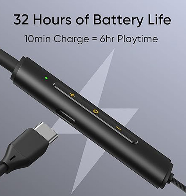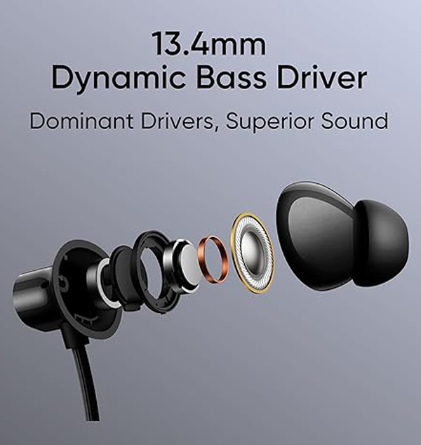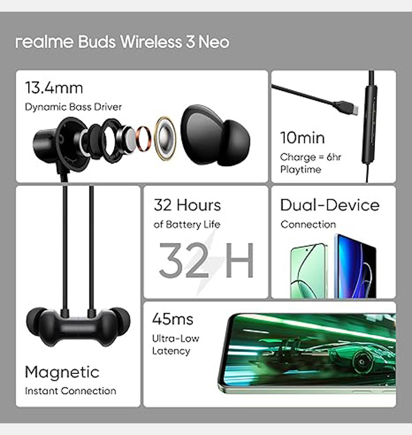 13.4mm Dynamic Bass Boost Driver | AI Environmental Noise Cancellation (AI ENC) for calls Upto 32 Hours total playback | Fast Charging support of 10 mins Charge for 6 hrs Playback Dual-Device Connection | Google Fast Pair 45ms Low Latency | Supports Bluetooth 5.4