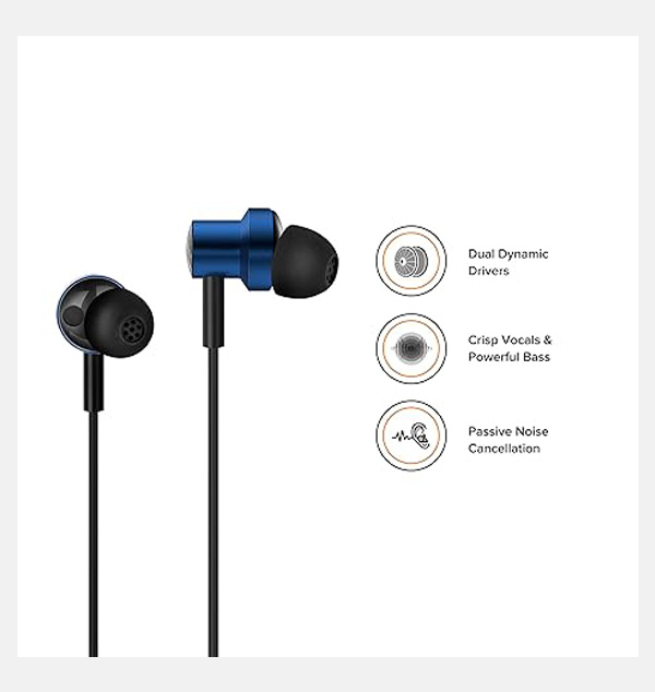 XIAOMI Dual Driver Dynamic Bass in-Ear Earphones with Mic, 10mm& 8mm Dual Dynamic Drivers for Heavy Bass & Crystal Clear Vocals, Passive Noice Cancellation, Magnetic Earbuds with Braided Cable (Blue)