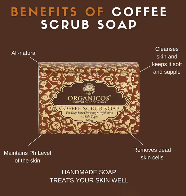 Handmade Coffee Scrub Soap | 100% Natural | Coorg Coffee Grounds, Goat's Milk, Coconut Oil | With Pure Essential Oils | 100gm