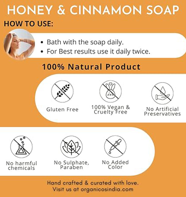 Organicos Herbal Honey & Cinnamon Bathing Bar Soap for Men & Women Pure And Gentle All Natural Soap Bar for Soft Supple Skin | Gentle Cleanser Moisturizing Bar Soap for all Skin Types