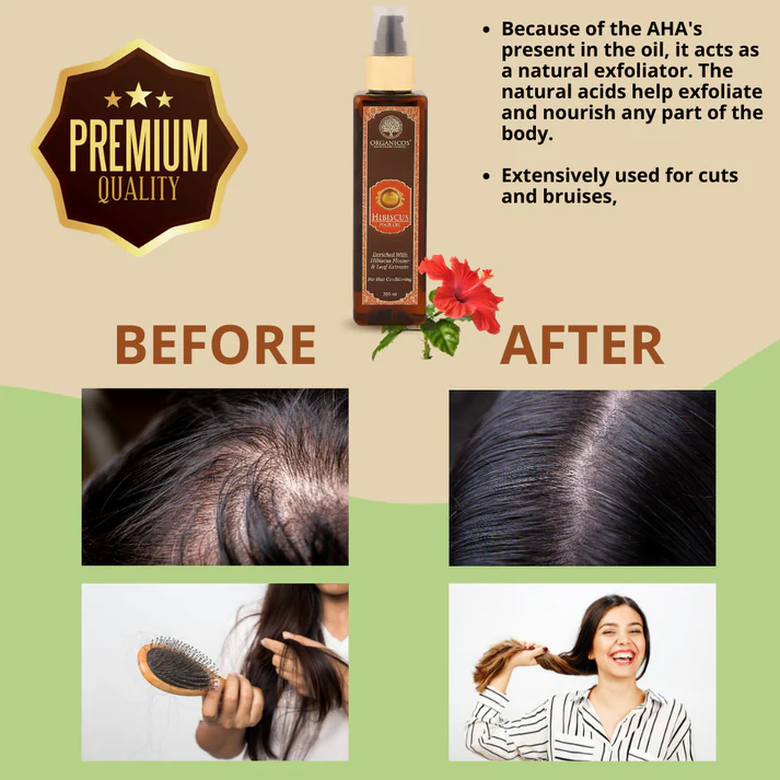 The Hibiscus hair oil can be applied directly to the scalp. Use it twice a week for best results. Massage the oil into your hair for about 15 minutes in a circular motion, then leave it in for at least 30 minutes.