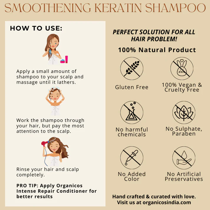The keratin present in the shampoo binds to each strand of hair providing an extra protective layer. The smoothening shampoo hydrates and replenishes dry scalp. What more does the Smoothening Keratin Shampoo do for your hair?