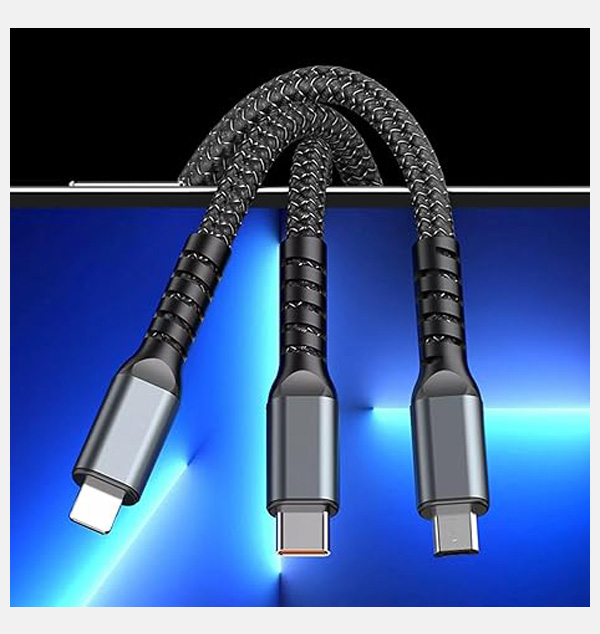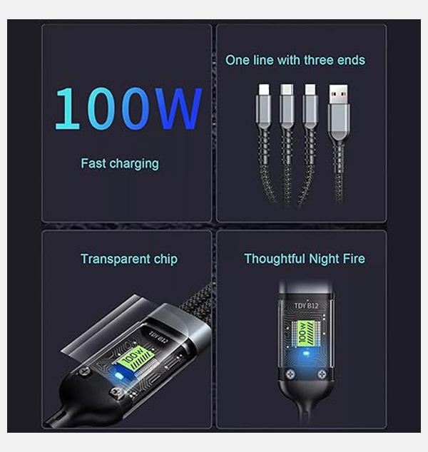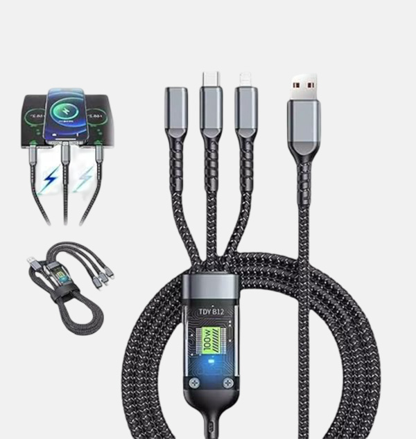 Luminous-Super-Fast Charging 3-in-1 100w Data Cable with cable protector | Car accessories | lightening + C type + Micro usb | Compatible with all phones