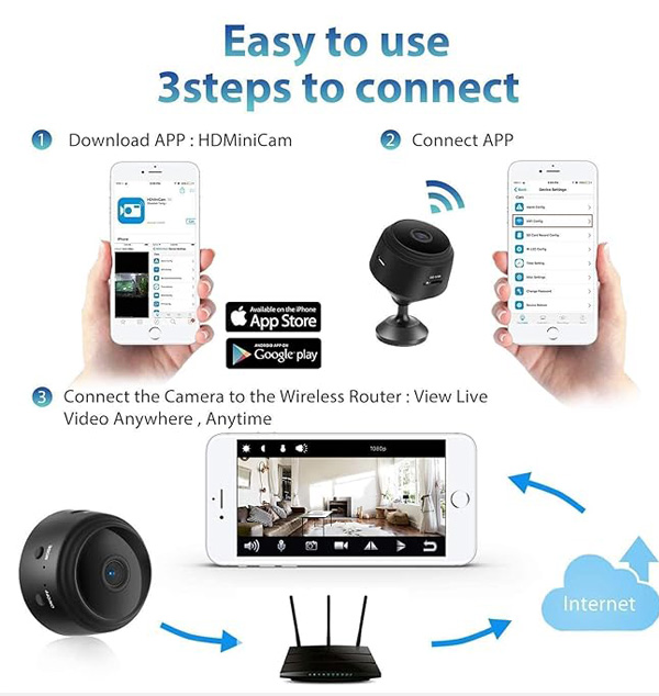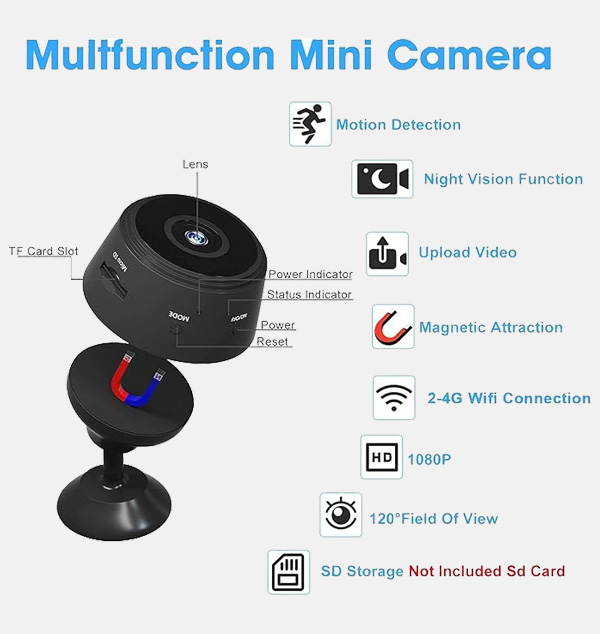 This WiFi camera is the latest model with Built-in strong Magnet, 81° Wide Angle and 1080P Live Video, which makes it perfect as a home security camera or car DVR video recorder. Support up to 64GB micro SD card and equipped with Flexible Semi Rigid USB Cable, which can get the camera stand easily. You can also maneuver the cam at any angles or position by the cable as you need.
