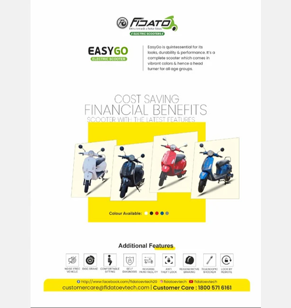 EasyGO N Electric Scooter - 100 km/charge Range, 5 Hours Charging Time, 30 Top Speed