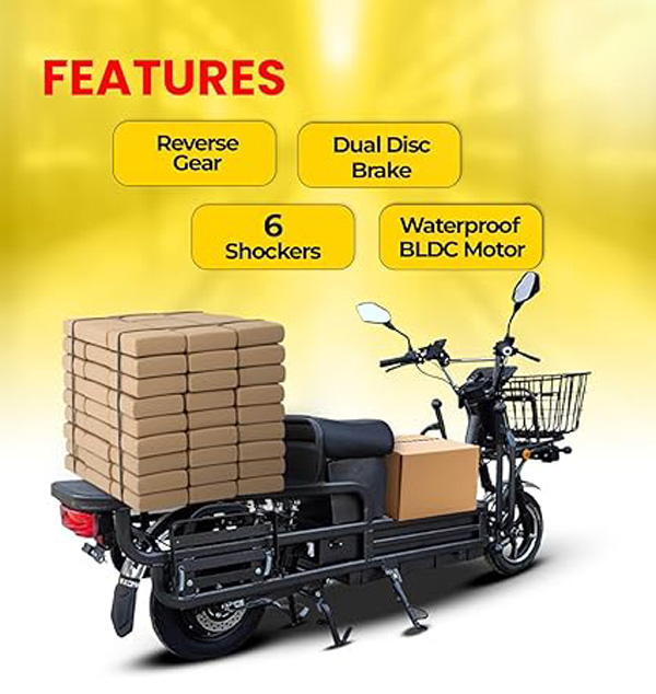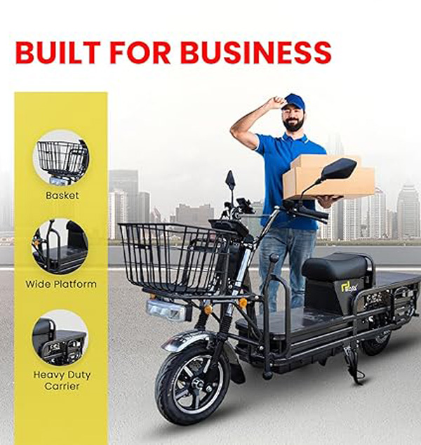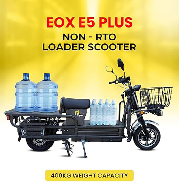 Low Speed Electric Loader Scooter Non RTO, 400Kg Weight Capacity, Black with Portable Lithium Battery & Charger