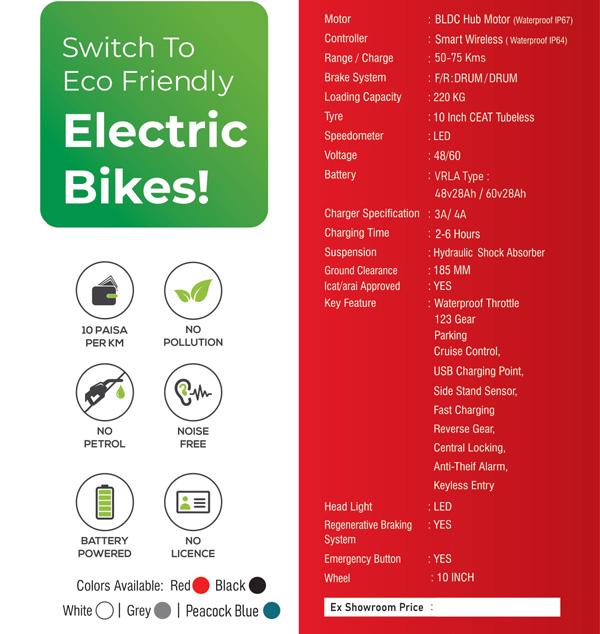 Invest In E Motorcycle, Invest In Future! E Motorcycles are super-efficient and are #SuitableForShortDistances!. It is made at our in-house facility under strict supervision, keeping industry standards in mind. We check their performance on various grounds before sending the Long Range Electric Motorcycle further to customers.