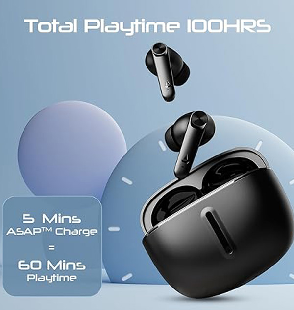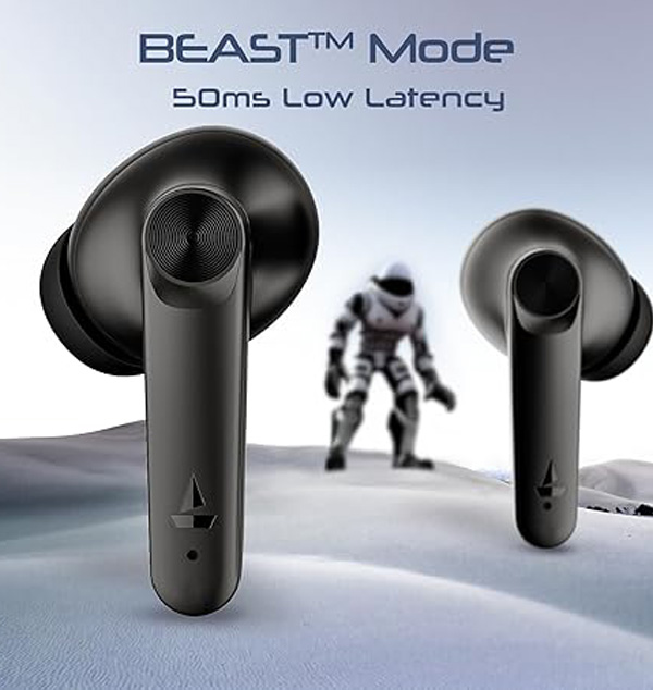 boAt Airdopes 200 Plus Truly Wireless in Ear Ear Buds w/ 100 Hours Playback, Quad Mics ENx Tech, 13mm Drivers, Beast Mode(50ms Low Latency), ASAP Charge(5 Min=60 Min), IWP Tech, BT v5.3(Carbon Black)