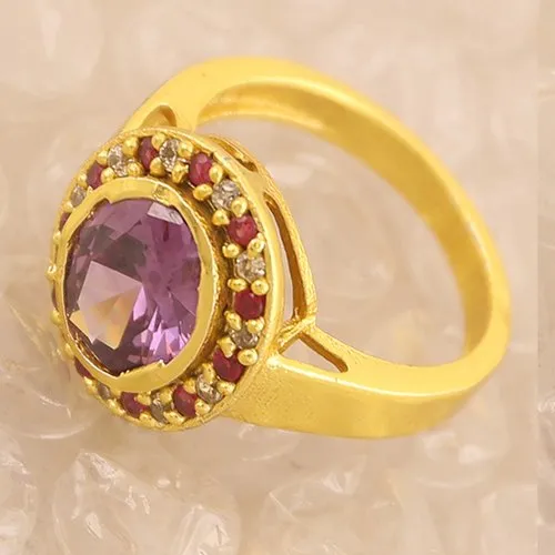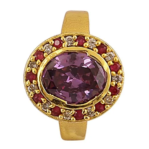 AD Multi Ring have big zircon in center and are surrounded with white and red zircons, golden colored ring Zircon is ubiquitous in the crust of Earth.