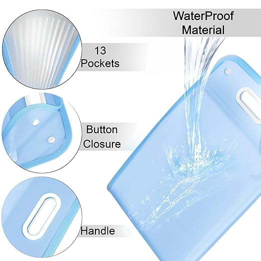 13 Pocket Vertical Expanding File Folder – A4 Letter Size Document Organizer – Durable Accordion File Folder – Portable Storage for Office Home and School – Blue