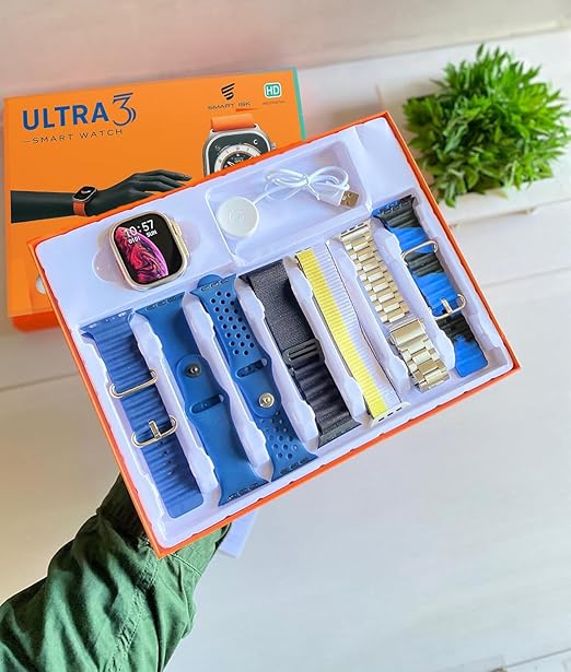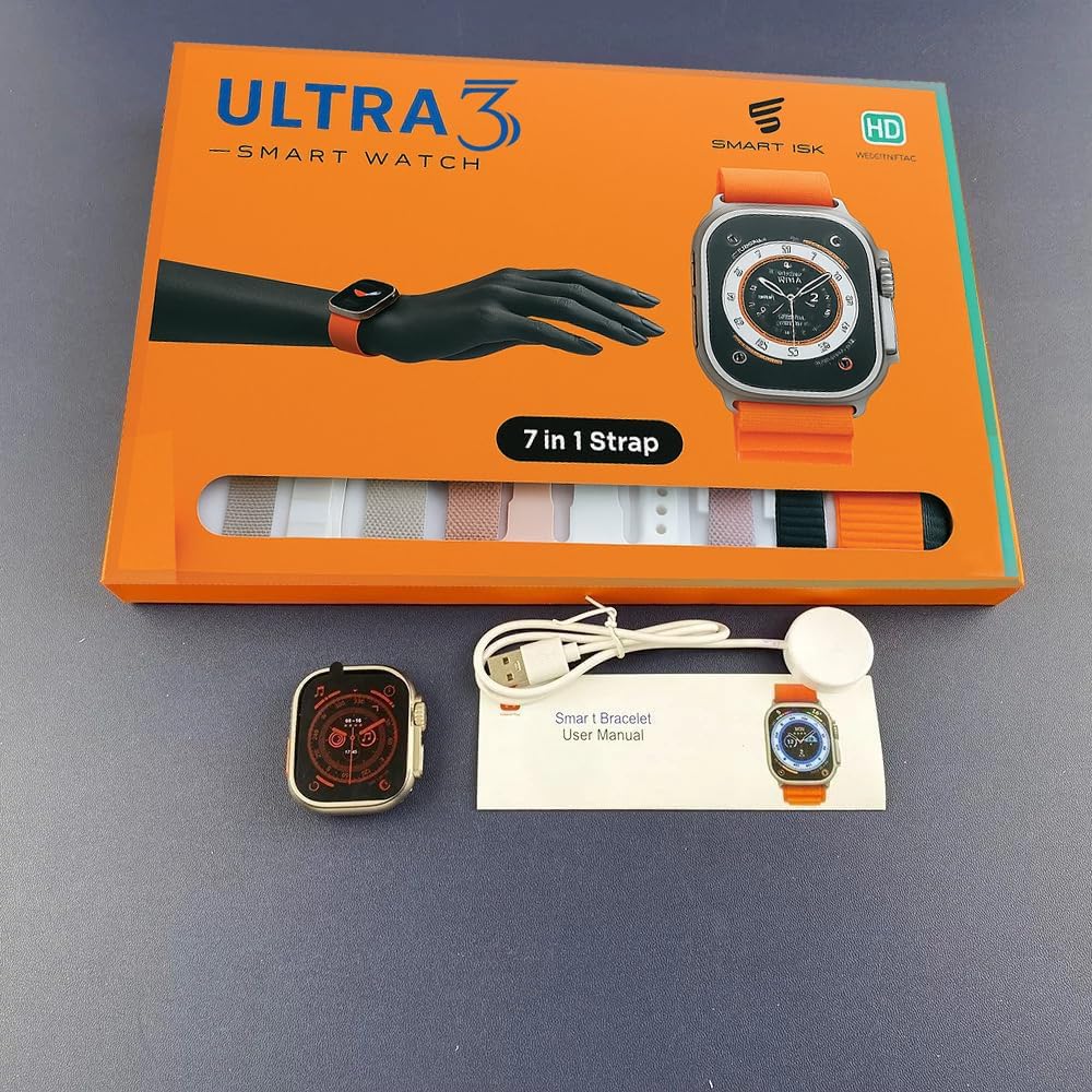 Smart Watch Ultra3 7 in 1 Straps 2.01 Infinite Display BT Calling Sports Mode Fitness 7 Belt for Men & Women Smartwatch (7 Multicolor Strap, Free Size)