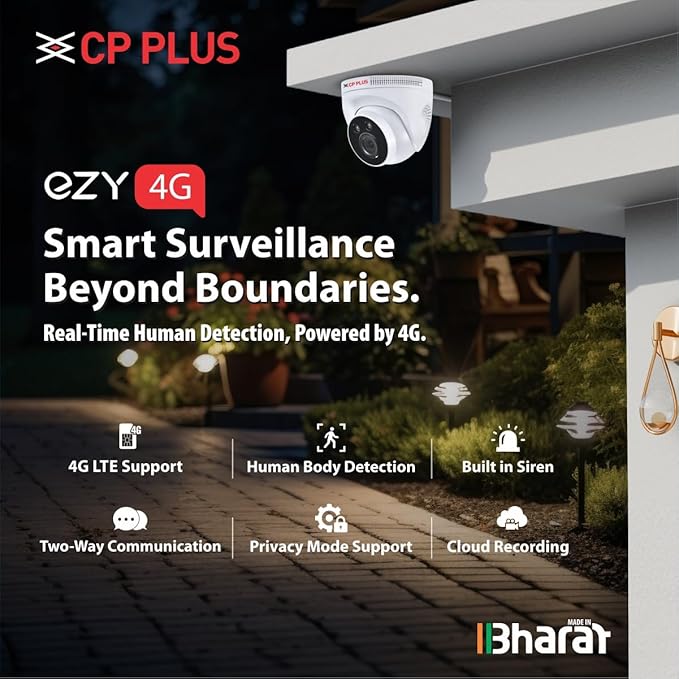 CP PLUS 3MP 4G Full HD Smart CCTV Camera for Home Outdoor | CTC Cyber Secure Tech | Night Vision | Human Detection | 2-Way Audio View & Talk | H.265 | Micro SD Card 256GB | Alexa & OK Google | EZ-M32T