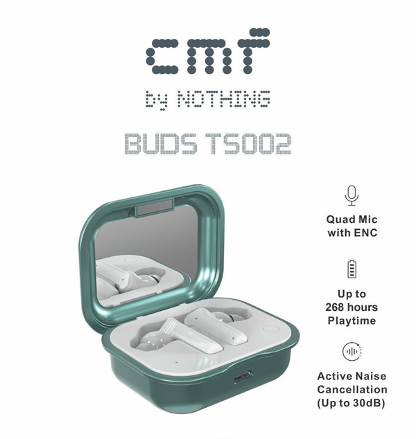 CMF BY NOTHING Buds TS002 Fully Wireless Earbuds/Hi-Fi Sound/Noise Cancelling to 30dB/6 HD Microphone/ChatGPT Integration/Earphone Bluetooth 5.3//Smart Dial/Adaptive ANC Equipped/Sound Upto 268 Hrs Playtime