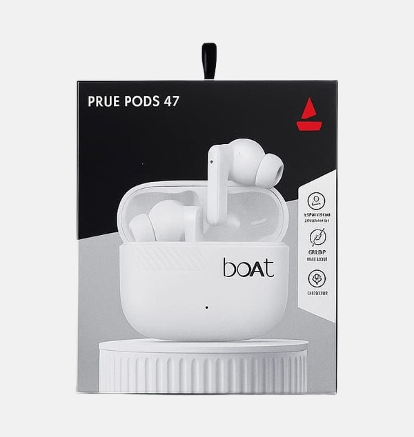 boAt P47 is a wireless Bluetooth TWS earbud combo featuring up to 30 hours of playtime, noise cancellation, and an in-ear, black-colored design. Designed in India