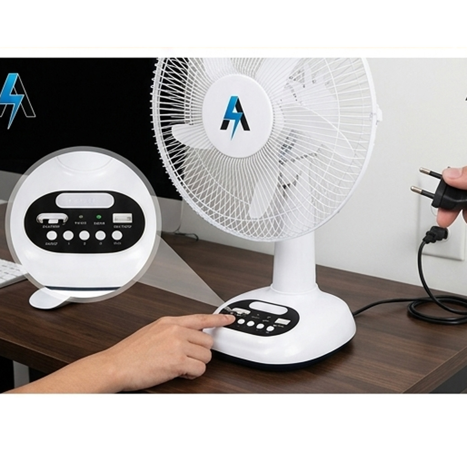 The Akari AK-8015 Rechargeable Fan is a 16-inch oscillating fan designed for both AC and DC operation, making it versatile for various environments.
