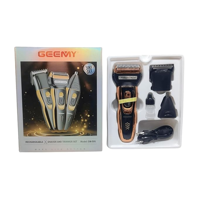 Versatile Grooming Set: The 3IN1 Gemy Shaver and Trimmer Set GM-595 offers a complete grooming solution with a shaver, trimmer, and nose/ear hair trimmer.
