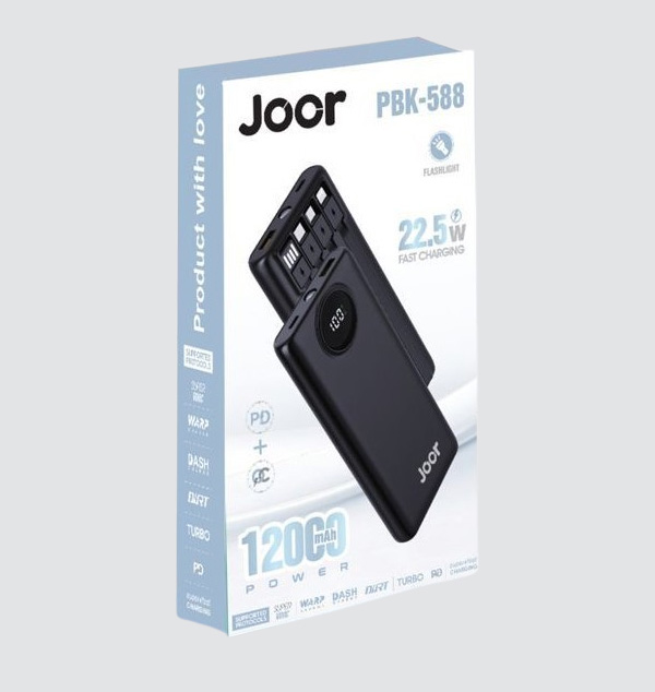 Joor PBK-588 power bank, featuring a new launch design with a 12000mAh capacity.