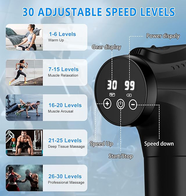 Massage Gun, Muscle Massage Gun for Athletes Handheld Deep Tissue Massager Tool 30 Speed Levels 9 Heads