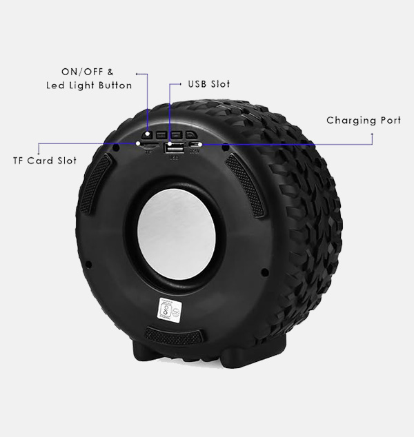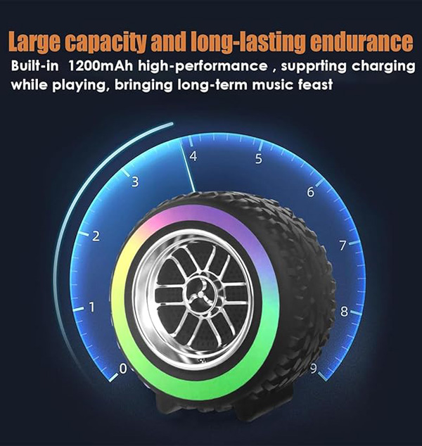 MZ Turbo Blast Wireless Speaker - High-Performance Portable Bluetooth Audio with Tire Design, Deep Bass, and 360-Degree Sound - Auto Series (RGB Light)
