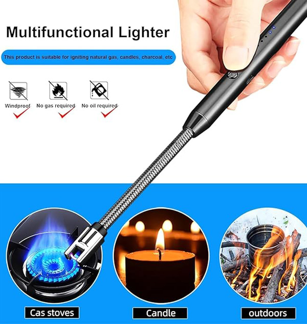 RECHARGEABLE LIGHTER WITH BATTERY INDICATOR : Since there is a very handy battery indicator on the arc lighter, you will know when you should give it to charge. And a quick charge will keep this lighter for candles running for days. The ignition time will last for 8 seconds and then automatically turn off, press the ignition again, the gas lighter will continue to ignite.