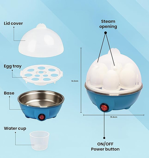 Simple One-Touch Operation: Start boiling your eggs with ease using the intuitive one-touch control – just add water, place eggs, and press the button. Easy to Store: When not in use, the compact size and detachable parts allow for easy storage in cabinets or on shelves, keeping your kitchen clutter-free. Space-Saving Design: The compact and sleek design fits seamlessly into any kitchen, dorm room, or office space, making it ideal for small apartments and limited counter space.