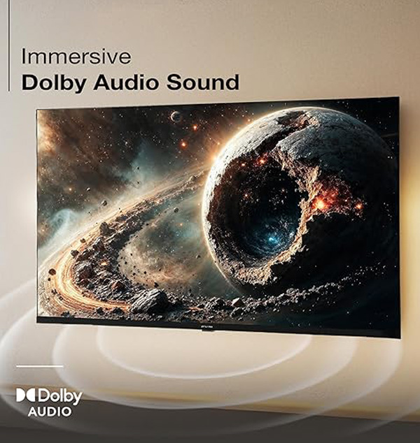 Connectivity: 2 HDMI ports to connect multiple devices | 2 USB ports to connect hard drives and other USB devices|AV In|RJ45|Optical out for sound|Wi-Fi|Antenna|Earphone jack|Ethernet|ARC Sound: 20Watts Output| Dolby Audio|Surround Sound Smart TV Features: Quadcore processor |OS: Google TV 5.0 (OS Ver. Android 14) |Bold and detailed UI, HD display, HDR10/HLG,1GB/8GB,Wi-Fi-2.4G/5G,ARC,Google Assistant, Bluetooth ,Chromecast built-in|Inbulit Appstore|Games |Supported Apps : Prime Video |Jiohotstar|YouTube.
