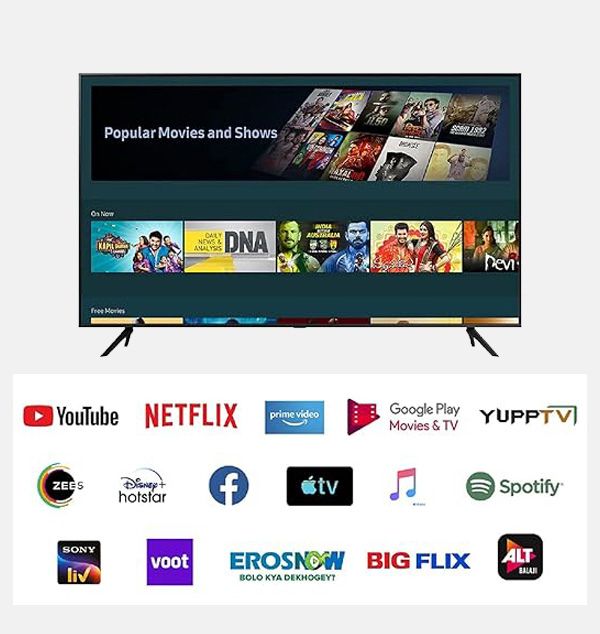 Resolution : Ultra HD (3840 x 2160) | Refresh Rate : 60 Hertz Connectivity: 2 HDMI ports to connect set top box, Blu-ray speakers or a gaming console | 1 USB ports to connect hard drives or other USB devices | One Connect Box for all your connectivity needs Sound: 20 Watts Output | Powerful Speakers with Dolby Digital Plus Smart TV Features : Prime Video, Hotstar, Netflix, Zee5 and many more | PC Mode | Universal Guide | Web Browser | Screen Mirroring Display: HDR | Purcolor | HLG | Mega Contrast | Contrast Enhancer | UHD Dimming