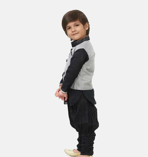 This elegant kurta set is designed in soft cotton blend fabric paired with a luxurious Dupion silk waistcoat, making it a perfect ethnic choice for festivals, family gatherings, or special occasions. The set comes with a long-sleeve kurta, churidar bottoms, and a stylish waistcoat that enhances the traditional look while keeping comfort in mind.