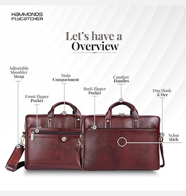 Premium Genuine Leather: Experience the luxury and durability of our HAMMONDS FLYCATCHER Leather Laptop Bag. This Laptop Bag for Men or 15.6 laptop bag is crafted from high-quality materials to ensure longevity and style, it is the perfect leather bag for men for daily use. Elevate your professional look with this stylish mens office bag designed for those who value quality and elegance.