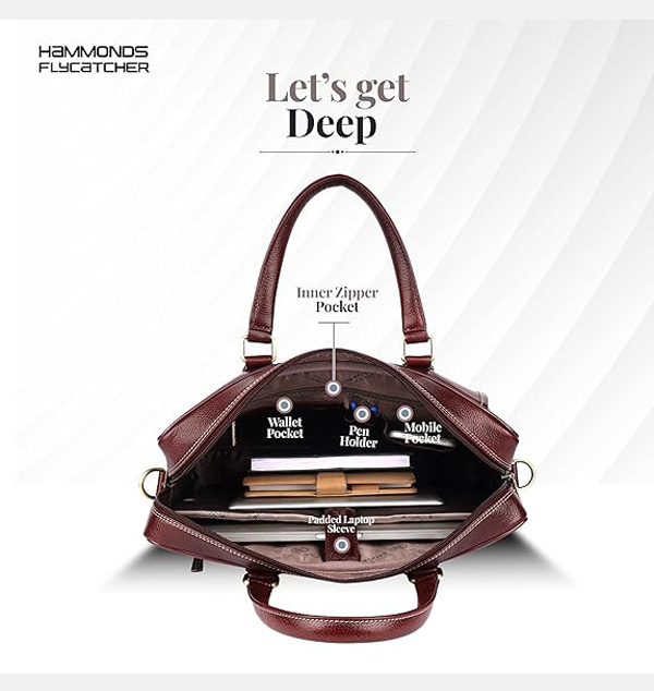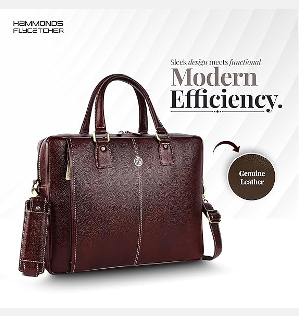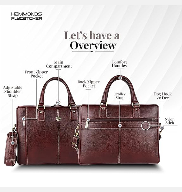 HAMMONDS FLYCATCHER Genuine Leather Office Bag for Men with Trolley Strap, 15.6 Inch Laptop Bag for Men, Adjustable Strap, Multi-Compartments, 1 Year Warranty - Office, Travel, Daily Use