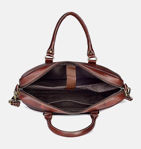 Material:Genuine Leather. Slim, compact case is perfect for carrying laptops .Includes padded shoulder adjustable strap. Additional storage pockets for documents, diaries and other stationery..