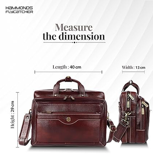 HAMMONDS FLYCATCHER Genuine Leather Expandable Office Bag for Men with Trolley Strap, Adjustable Strap, 15.6 Inch Leather Laptop Bag for Men for Office, Travel, Daily Use - 1 Year Warranty - Brown