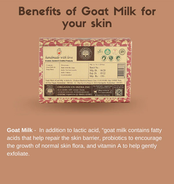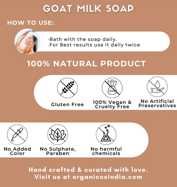 Goat Milk Soap For Skin Brightening Tan Removal | Cold Processed TFM Grade 1 and Chemical Free | For Men & Women | Skin Hydrating and Exfoliating (100 g)