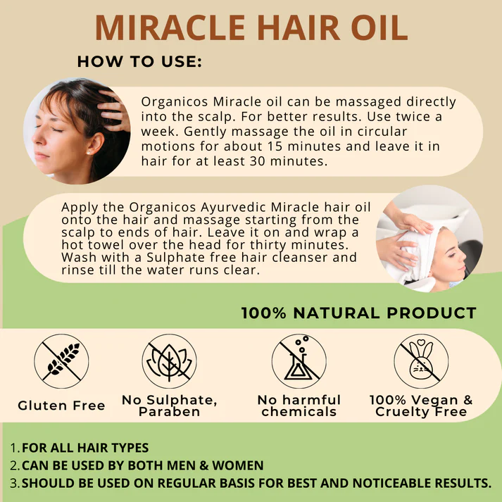 Miracle Hair Oil is a chemical-free, 100% natural product. It is suitable for both men and women.