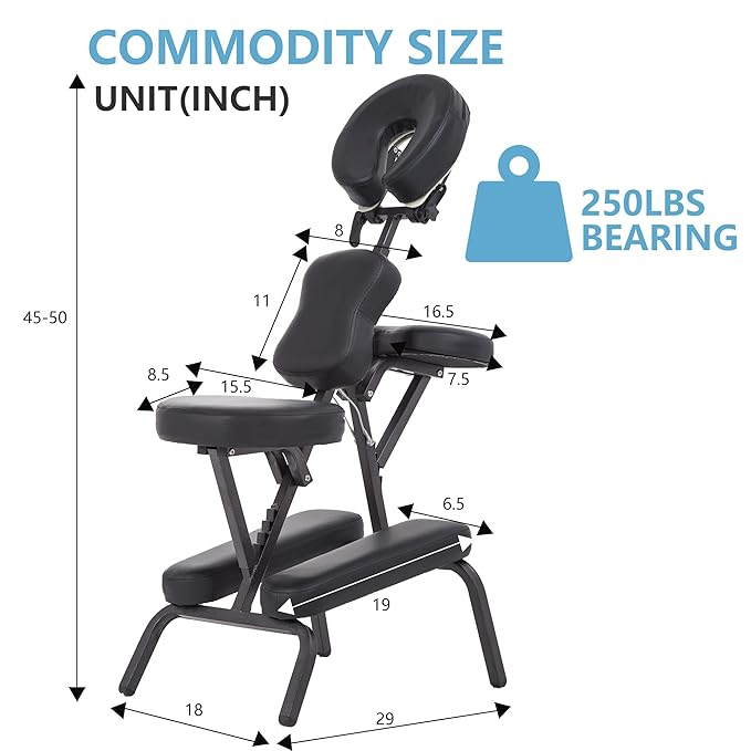 The metal frame of this portable massage chair is covered with powder coating to prolong its service life. High-density foam upholstered is covered at the contact with human body, which is not only soft and comfortable, but also adjustable, so that you can adjust your posture at any time and be in a relaxed state. The tattoo chair is covered with PU leather, so it is waterproof, oil proof and easy to clean. The portable massage chair weighs about 23 pounds and can be easily carried. It folds up and can be put into a attached handbag.