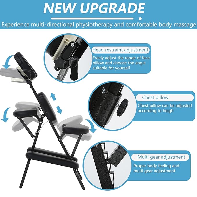 Portable Massage Chair, Height Adjustable Tattoo Chair, Folding Therapy Chair Face Cradle Salon Massage Chair with Carrying Bag (Black)