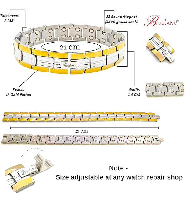 Adjustable : You Can Adjust It's Length As Per The Size Of Your Wrist Simply By Removing Links At Any Watch Repairing Shop. Elegant Design: Features a sleek and stylish silver and gold polished finish for a luxurious appearance. Secure Closure: Equipped with a durable foldover lock and magnetic clasp for added security and ease of wear.