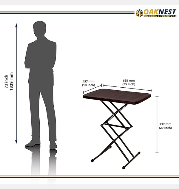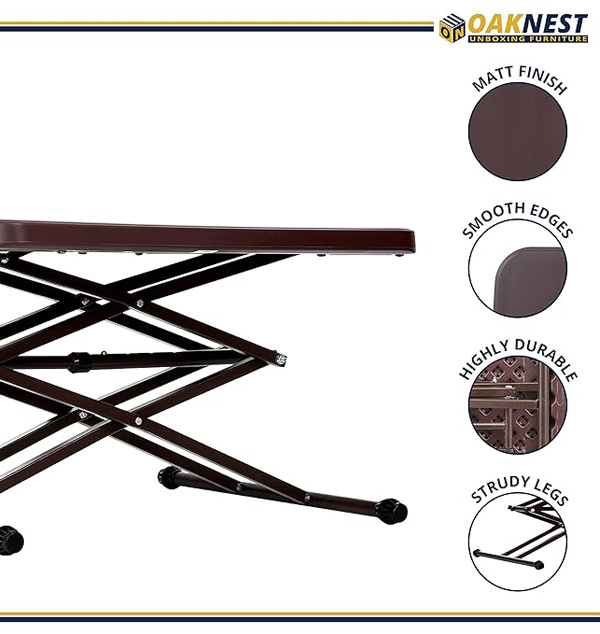 Versatile Usage: Transform your space with the Oaknest Supreme Scissor 3-Layer Height-Adjustable Multi-Purpose Table. Use it as a supreme study table, laptop desk, work-from-home essential, coffee table, outdoor furniture, and more. Smart Design: Embrace contemporary style with this ergonomic, heavy-duty table. Its stackable, space-saving design is constructed using blow molding technology for enhanced toughness.Product Description (LXWXH): 45.7 x 63.5 x 73.7 CMs