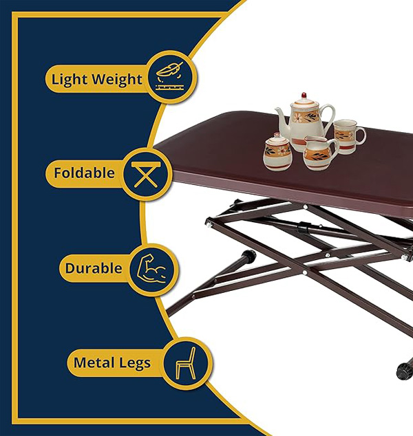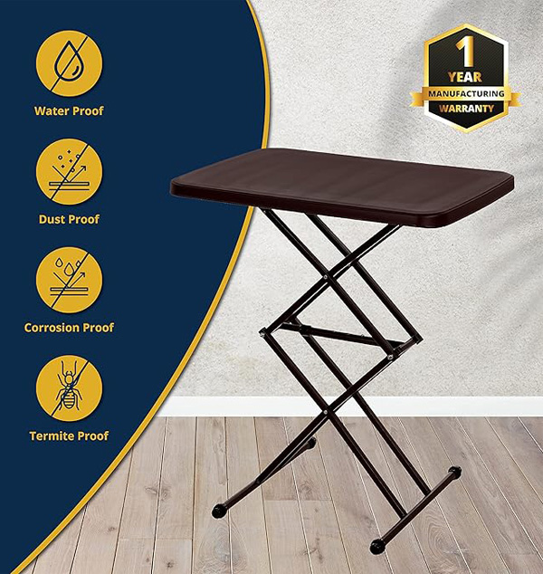 A perfect height adjustable table top that can keep your small and medium size luggage bags or any other utilities or even act as a computer table. Easy to move and quite sturdy as well!