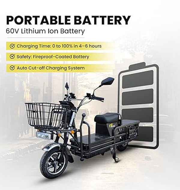 Low Speed Electric Loader Scooter Non RTO, 400Kg Weight Capacity, Black with Portable Lithium Battery & Charger